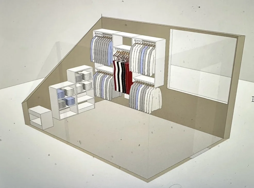 … and this is what I got. I was told their closets run in the $20K range. After MONTHS of waiting for a high end design, THIS is the sketch I got. I thought I was being Punk’d. My husband and I stared at it slack-jawed for no less than an hour. At this point, I knew I was going to be on my own.
