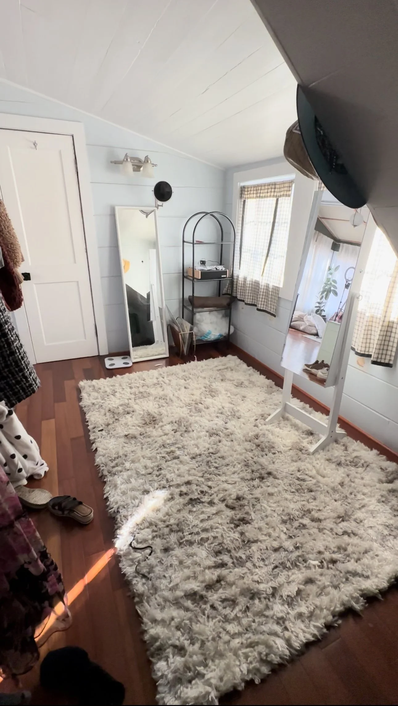 Click here for a link to all of the items I purchased, including the corner shelves, fluffy rugs, belt storage, and more!