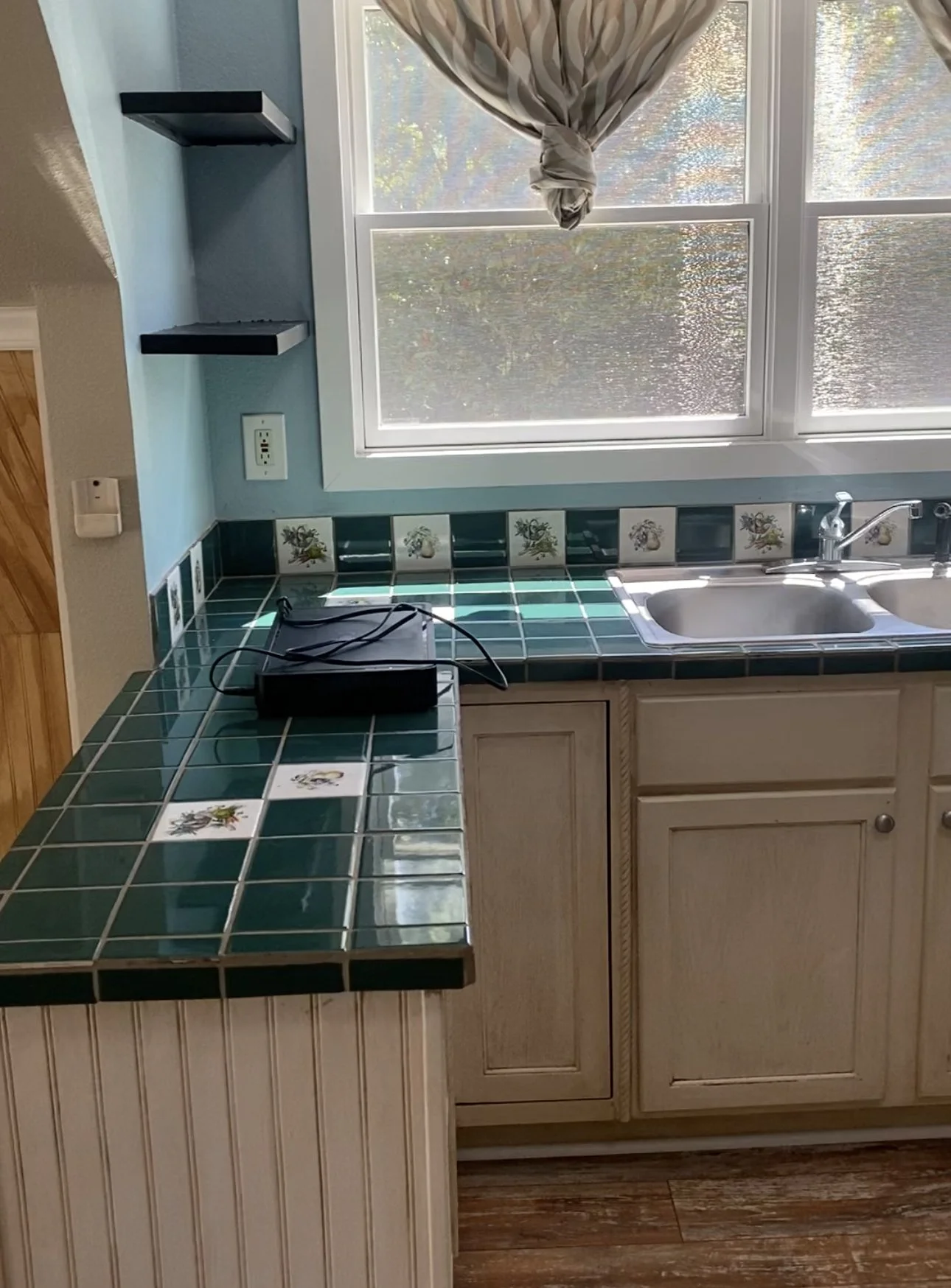 I recently began renovating our above-garage apartment. It included a very outdated kitchen. I was quoted thousands to replace the countertop with even the cheapest materials. I knew painting was an option, but I didn’t want the tile texture and grout lines to be visible through the paint. I saw a few videos showing peel and stick counters, but they often looked extremely lumpy if it was applied directly over the tile.