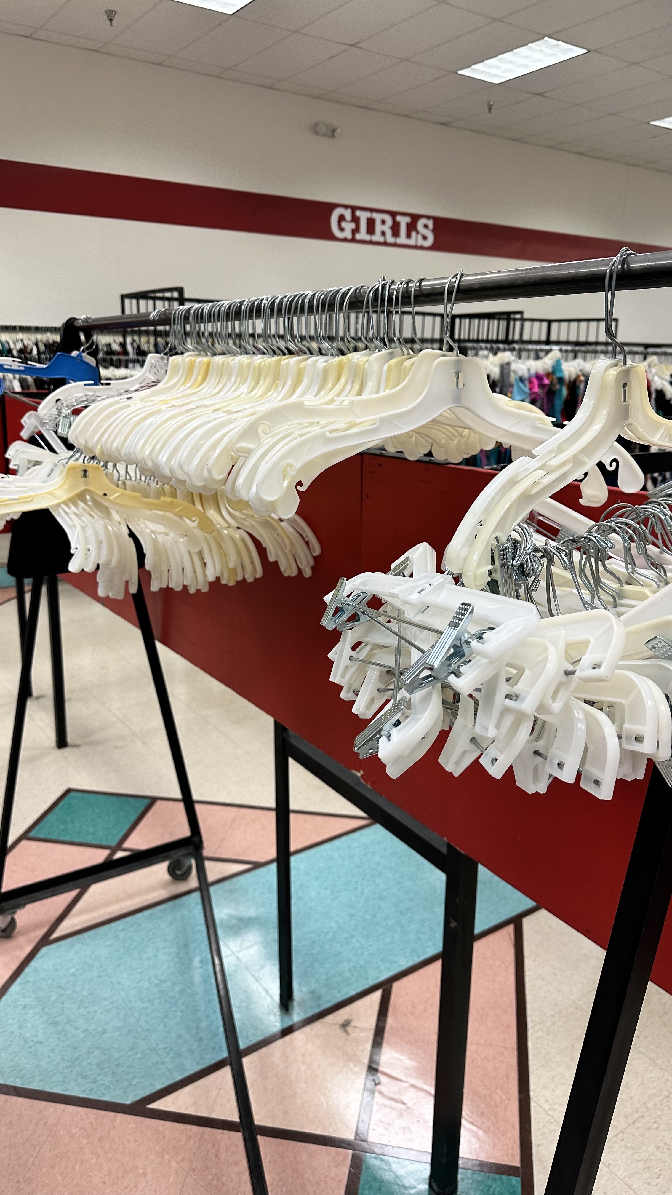 Look, I’ll be honest… the floor is nasty. You do not want your children to touch it (and they inevitably will!) The store also gets crazy with other kids running around, people pushing carts around, and you will be focusing on inspecting the clothing for size, damage, etc. and won’t be able to pay close attention to your kids.